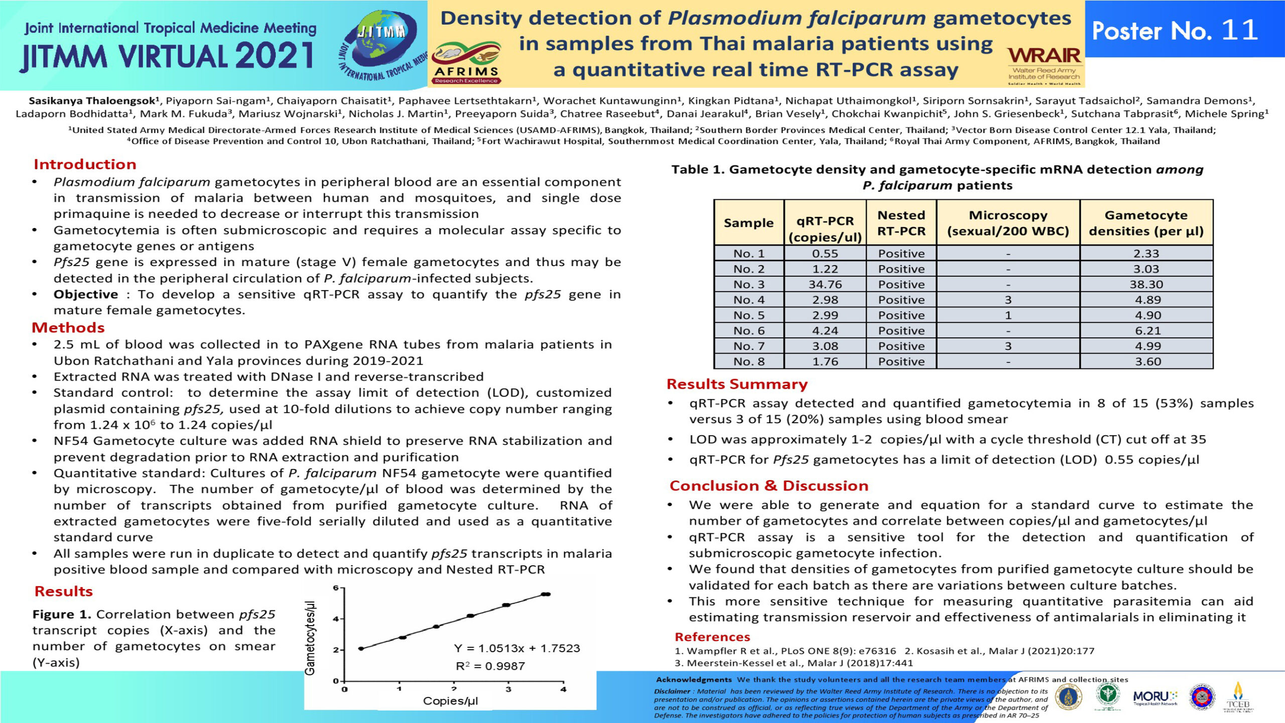 DENSITY DETECTION OF PLASMODIUM FALCIPARUM GAMETOCYTES IN SAMPLES FROM THAI MALARIA PATIENTS USING A QUANTITATIVE REAL TIME RT-PCR ASSAY