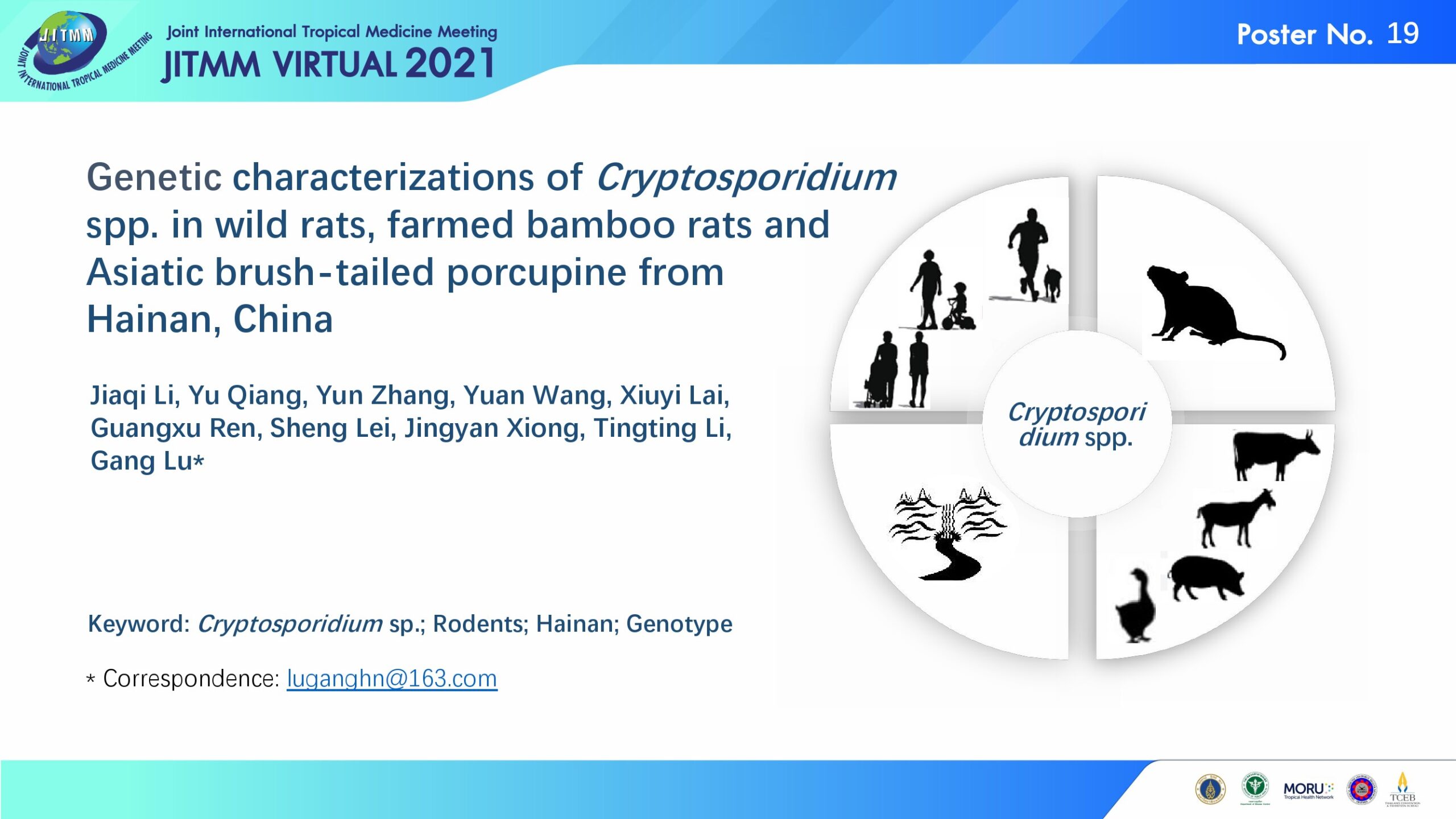 GENETIC CHARACTERIZATIONS OF CRYPTOSPORIDIUM SPP. IN WILD RATS, FARMED BAMBOO RATS AND ASIATIC BRUSH-TAILED PORCUPINE FROM HAINAN, CHINA.