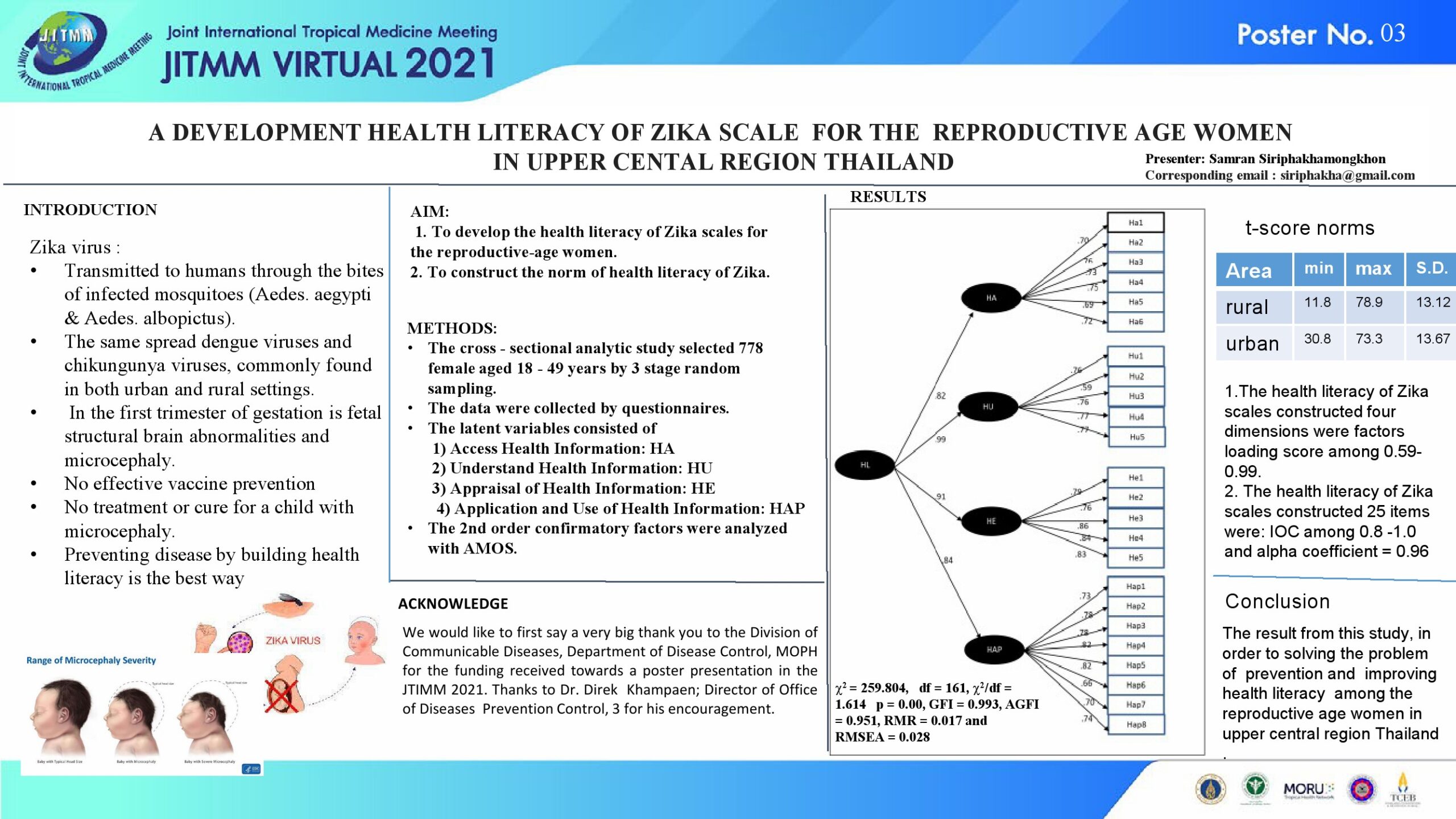 A DEVELOPMENT HEALTH LITERACY OF ZIKA SCALE FOR THE REPRODUCTIVE AGE WOMEN IN UPPER CENTAL REGION THAILAND